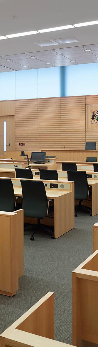 Being built in the early 1900s, the existing courthouse lacks adequate security and space (especially in regards to the public). It was at this point that the design wanted to create a celebrated public space in the annex building. The turning of courtrooms started to create voids of space that could be populated to show the existing courthouse as well as create a public level that was very delicate and open. If not for this step, most of the design could not have been pushed further due to the lack of space. In regards to the ground floor plan, the lighter gray shows the restricted circulation and an explanation of the different types of elevators, their need, use, and reasoning behind it. For the courtroom floor plan the big emphasis is on the public circulation (colored in a lighter gray) and how you are able to move through this building as a public person, restricted person, and secure person. The idea of shaping justice, as an architect, is the idea of allowing all types of people to feel less intimidated and a space that isn’t necessarily just a courthouse. A public space that can be celebrated as architecture as well as serving the purpose of being a legal space that follows rules and regulations. It is a dance that is very methodical but also has glimpses of allowing for free design.