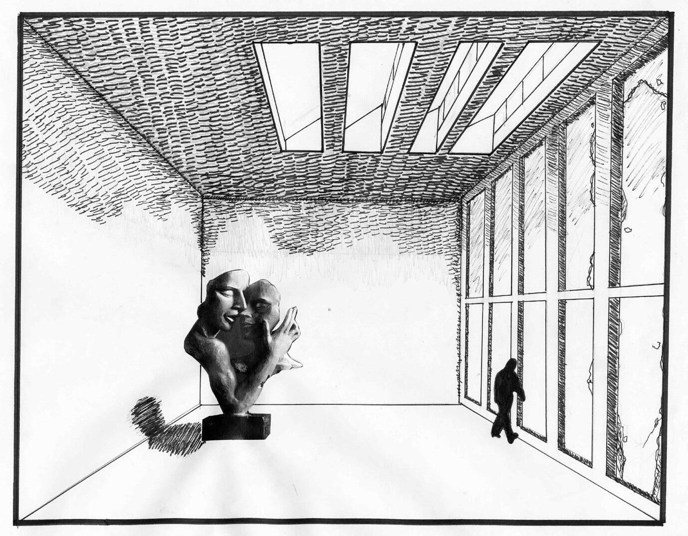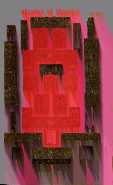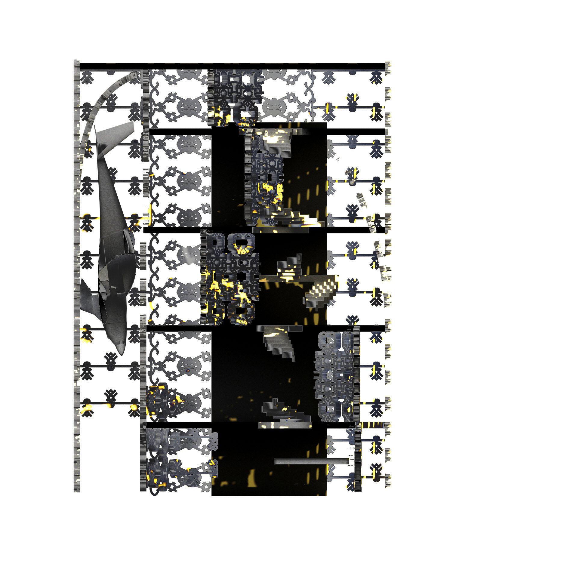Study was done on Italian ornamentation, tracings were created to emphasize tiled and continuous radial patterns. Shapes were taken from the tracings to be put into a series of matrices looking at 2D transformable variation. 6 variations were further iterated and paired to create linear, corner and enclosed modules. The 3 modules were integrated into a number of sheets. Color was embedded to constitute foreground and background. These sheets were laser cut and used in analog modeling. Sheets were modified to begin looking at space and light qualities. The transfigured sheets were then used as walls, windows, and openings for the form of the aviation museum. Program was introduced and the spatial analysis was conducted to begin to meet square footage requirements. An airplane was incorporated into the building as an art installation and creates a scope of scale between human and plane. The design was geometrical and rhythmic and allowed for compelling space, light and experience in the design.