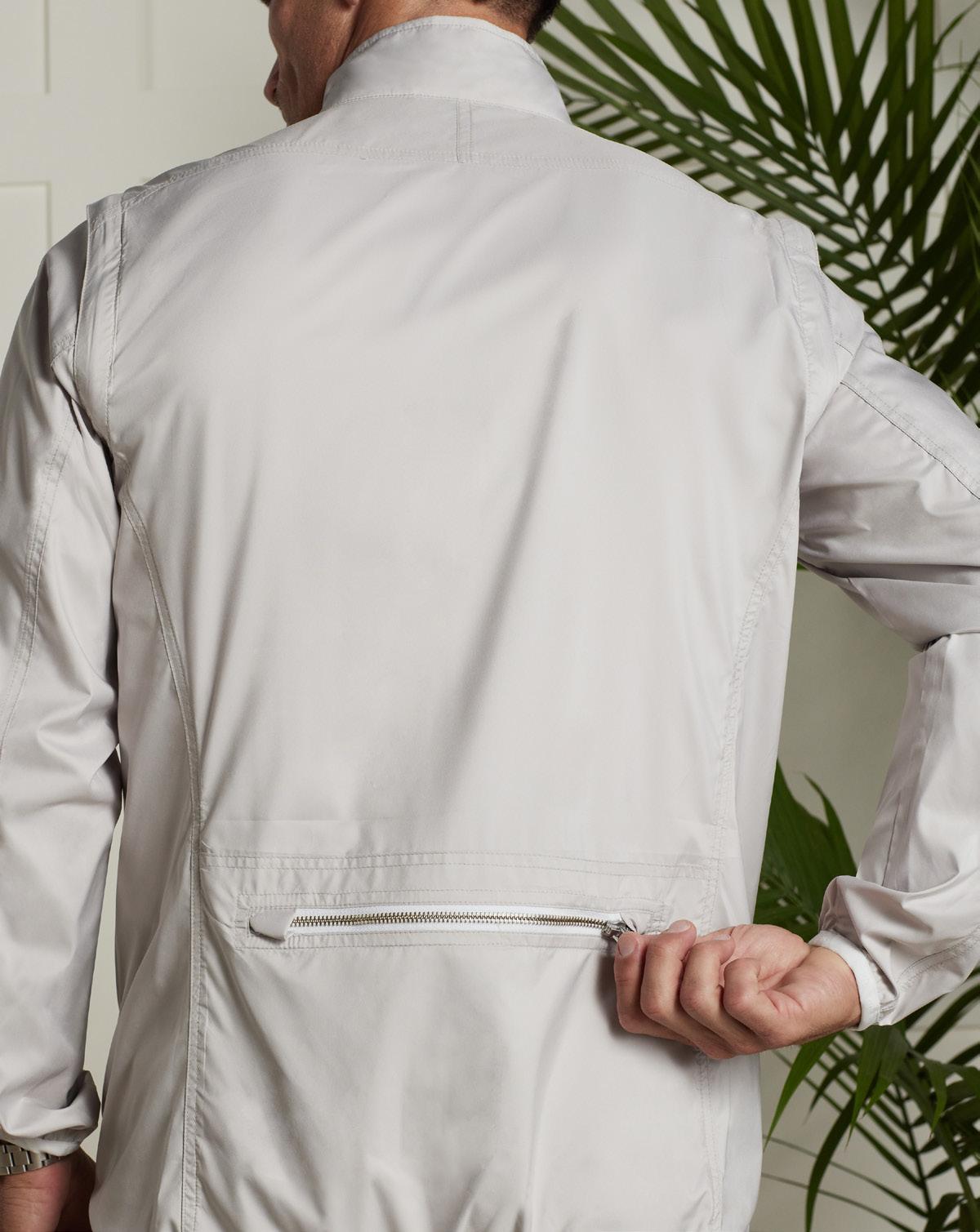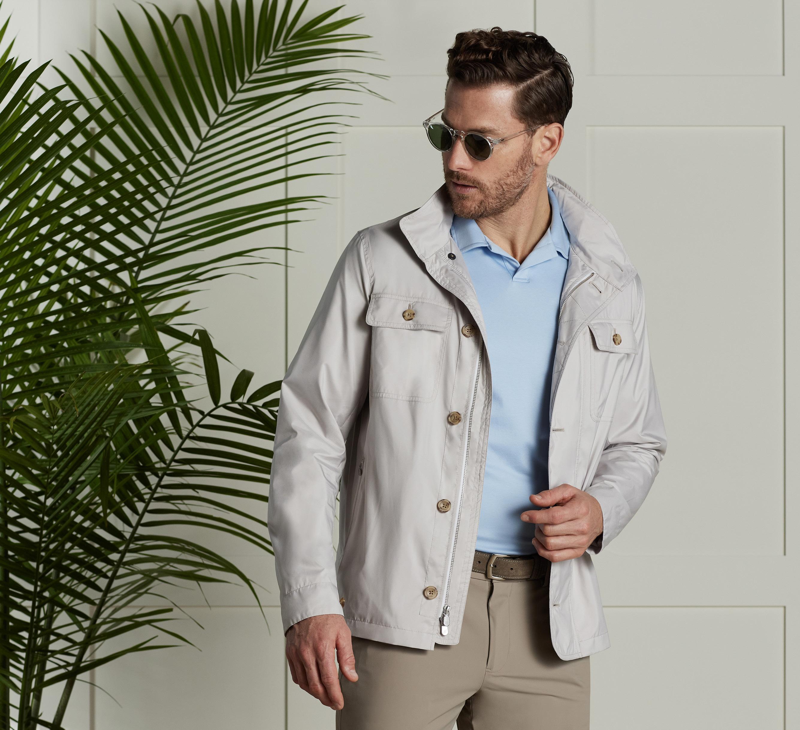 The Golf Jacket is designed to move seamlessly from the course to everyday wear. Lightweight, packable, and customizable, this versatile style features windproofing and tech details.