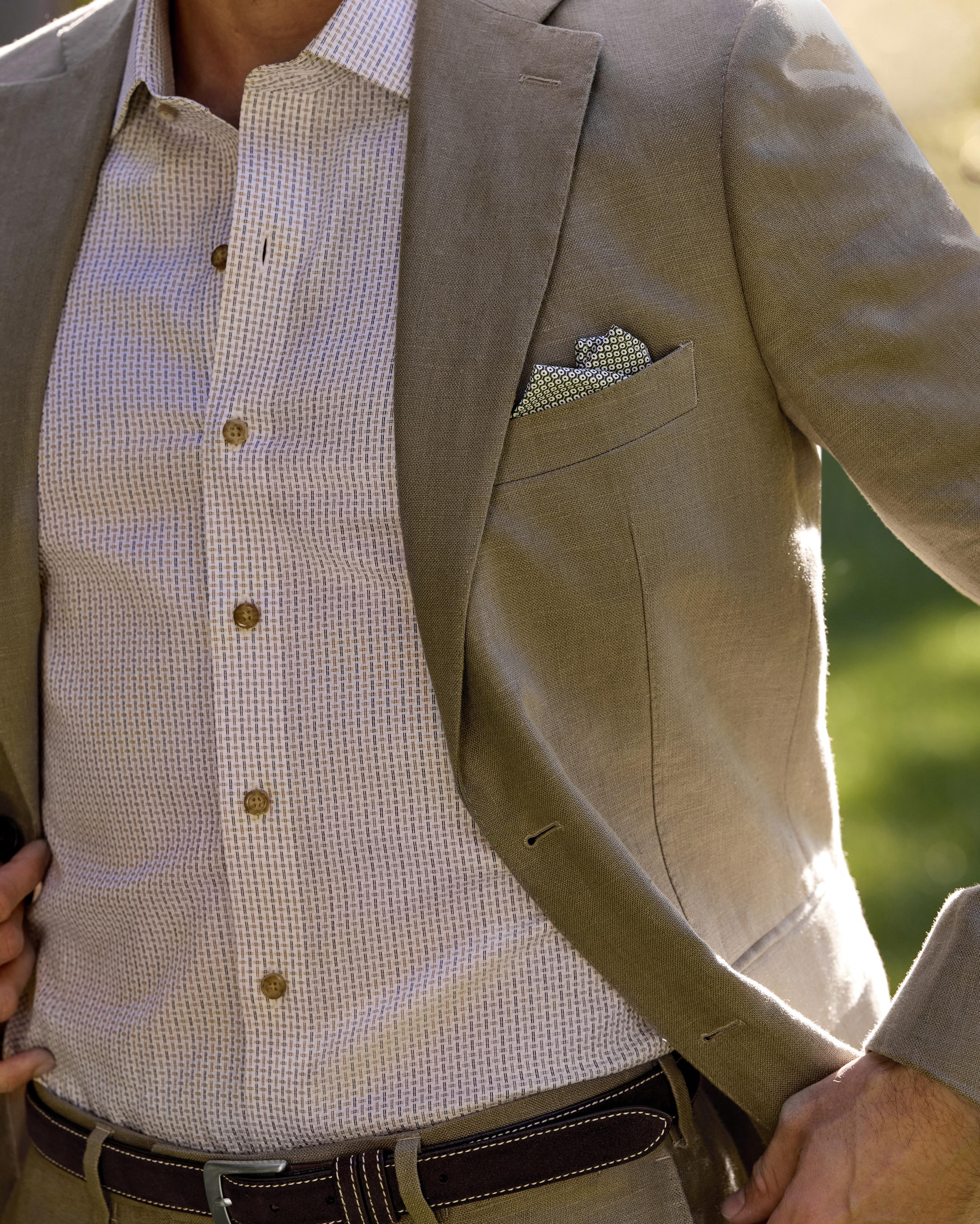 Our Italian linens are lightweight and airy, with a refined weave that brings out the beauty of natural linen with the performance “Journey” finish for wrinkle-free wear.