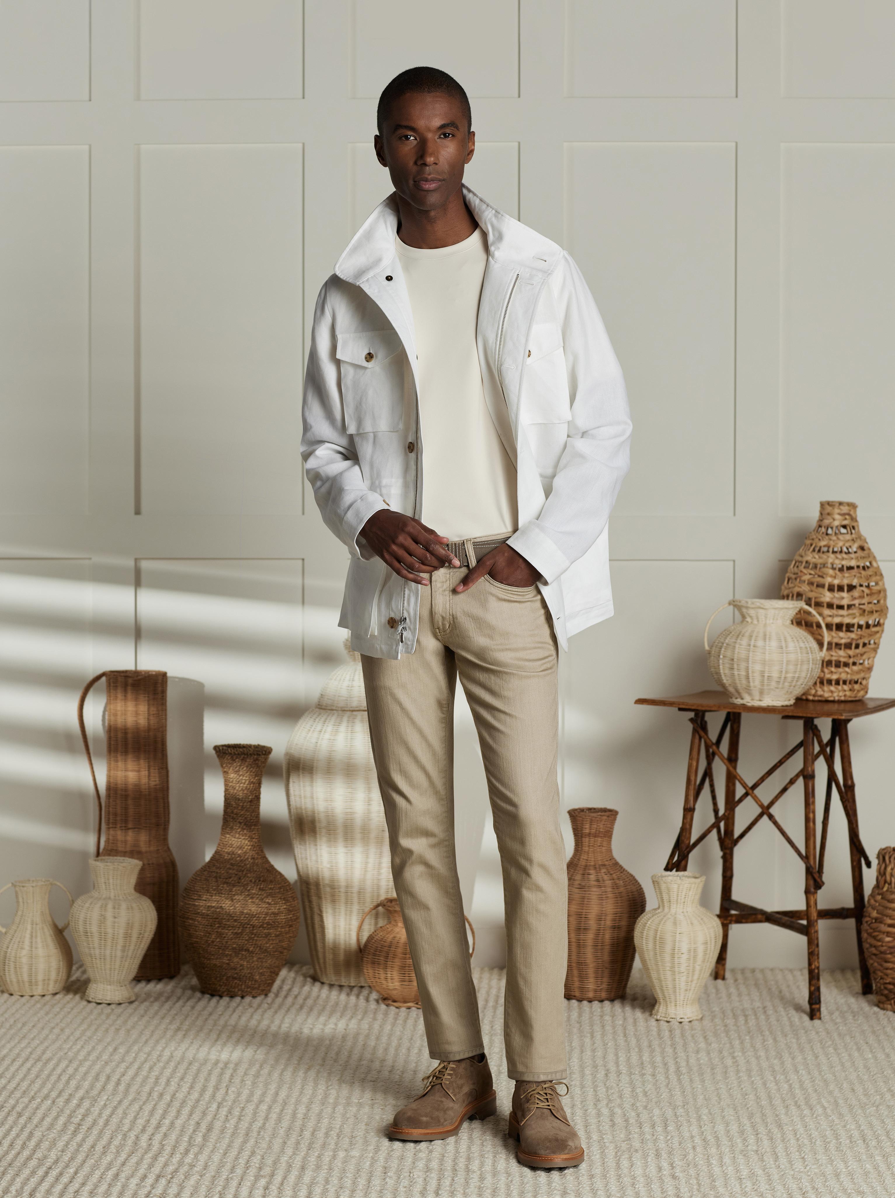 Explore fresh fabrics and seasonal colors in custom-made pants, chinos, 5-pockets, and shorts. Each style is designed for comfort, versatility, and a polished casual look.