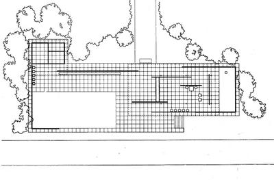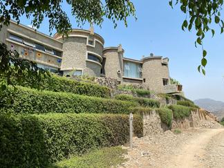 La casa se encuentra ubicado en Pachacamac, Lima, es un juego de un paralepipedo horizontal con cilindros verticales llenos de ornamentación con tendencia incaica.