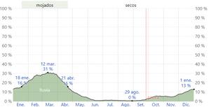 Latemporadaconmayorprecipitaciónes entre febrero, marzo y abril, teniendo el puntomásaltoenfebreroylasmásbajas, entrejuniohastaseptiembre.
