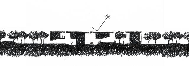 No como un trabajo de camuflaje arquitectónico, sino más bien de simbiosis entre la tierra y la actividad humana, tanto la rutinaria como la intelectual.