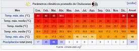 Temperatura agradable y pocas precipitaciones.La temperatura media más alta en Chulucanas es de 34°C en febrero y marzo y la más baja es de 19°Cenenero.
