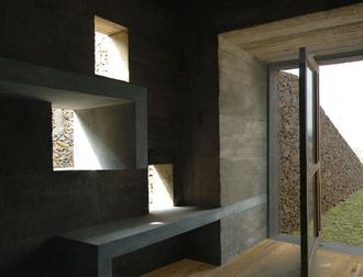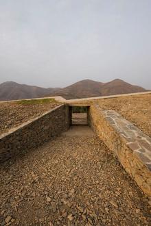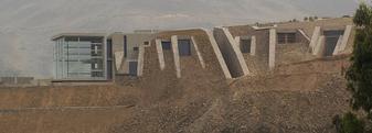 Se trata de una vivienda labrada en una colina de Pachacamac que busca confundirse con su entorno.