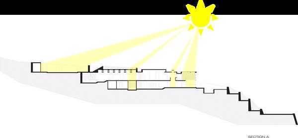 Altenerunaalturaestandarde4metrosypor medio de la estructura, buscamos que la iluminacipon sea controlada y asertiva en la composición,hemosporpuestounospaneles enformadetrianguloqueayudeacontrolar elingresodelsol.