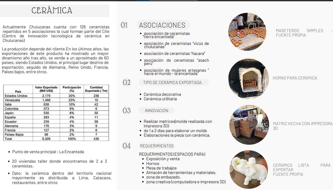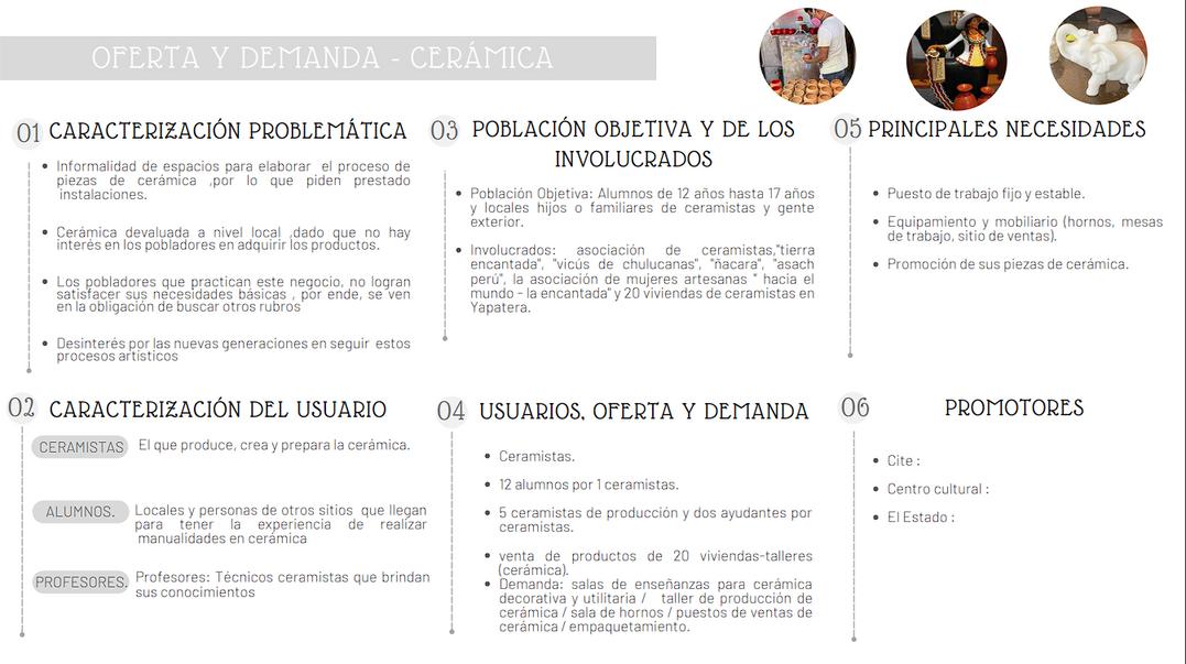 Para el caso de cerámicas, concluimos que tenemos que habilitar dos ambientes don donde se desarrolle esta actividad, tanto para que enseñen a los locales como para gente del exterior.