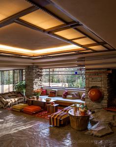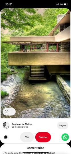 La casa está situada sobre una cascada(Río Bear Run),se trata de una edificación orgánica de líneas rectas voladizas que dan la ilusión de flotar sobre la cascada.Donde la composición es horizontal y el eje vertical está definido por la chimenea que sobresale por encima de la cubierta.
