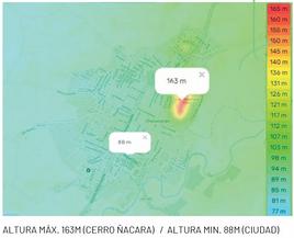 ALTURA MÁX 163M (CERRO ÑACARA) / ALTURA MIN 88M CIUDAD)