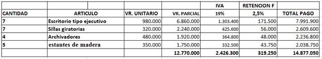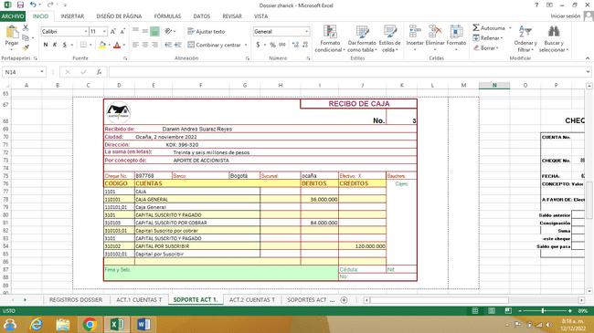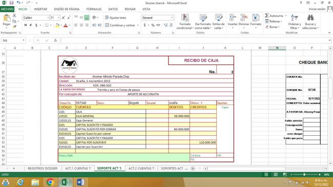 de $ 10.000 cada uno, pagando el 30%, la empresa recibe el dinero con cheque No. 897768
