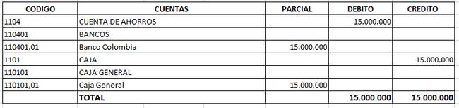 DETALLE: CODIGO No. PARCIALESDEBITOS CREDITOS 1104 15.000.000 110401 110401,01 15.000.000 1101 15.000.000 110101 110101,01 15.000.000 APROBADO