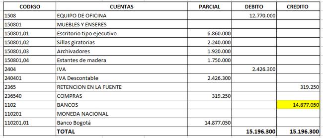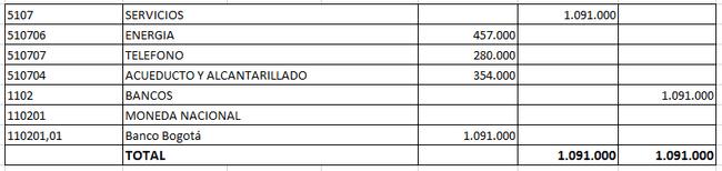 DÉBITOS CREDITOS 5107 $457.000 510706 1102 $457.000 110201 110201,01