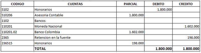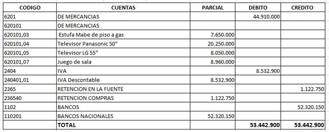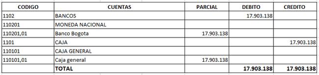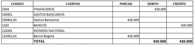 CODIGO No. PARCIALESDEBITOS CREDITOS 5304 420.000 530401 530401,01 420.000 1102 420.000 110201 110201,01 420.000 420.000 420.000