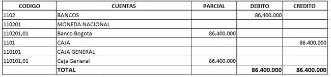 No. PARCIALESDEBITOS CREDITOS 1102 86.400.000 110201 110201,01 86.400.000 1101 86.400.000 110101 110101,01 86.400.000 86.400.000 86.400.000