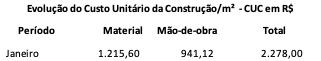 ü Estão incluídos gastos com materiais de construção, metais, louças, material hidráulico e elétrico, salário da mão de obra, serviços, entre outras despesas.