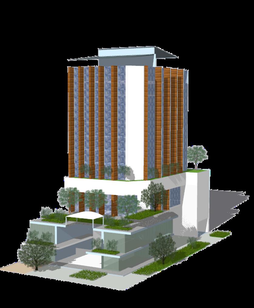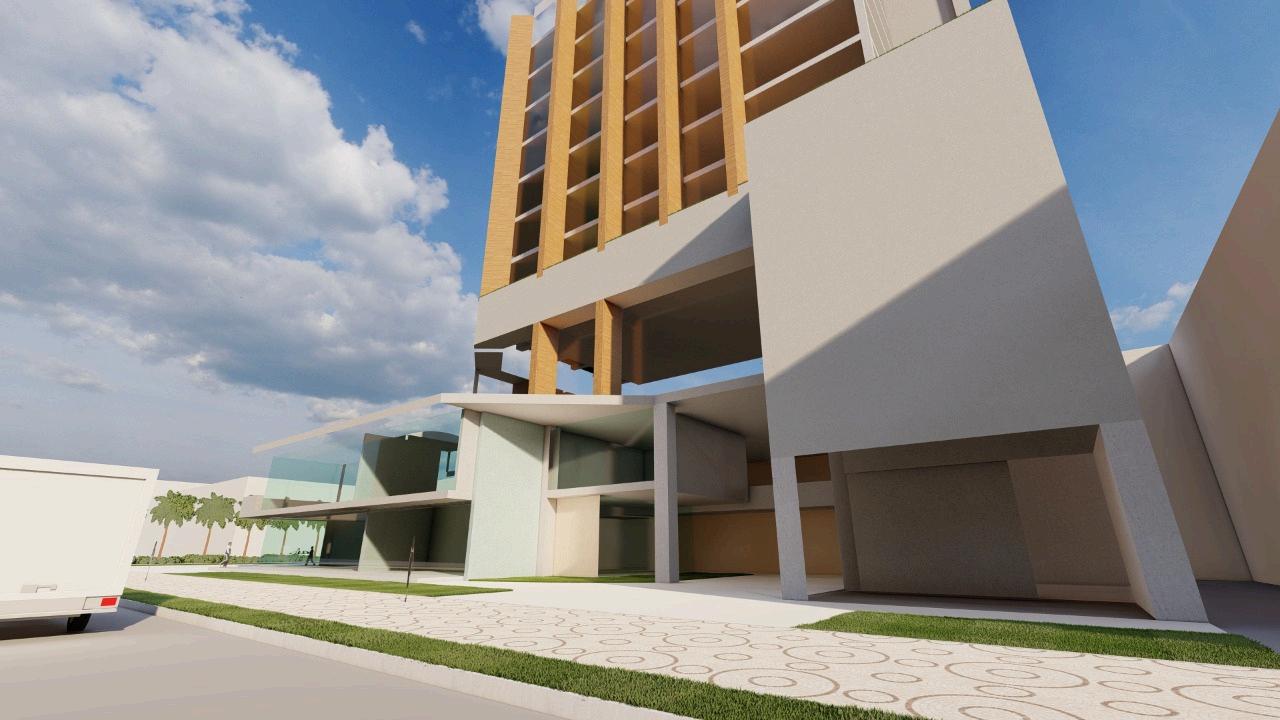Un vínculo de sostenibilidad fundamentado en conexión volumétrica de una masa mutada regularmente para generar ritmos y armonizar con la vegetación reutilizando energías y recursos atmosféricos a partir de paneles y sistemas de irrigación en diálogo con barreras solares y sonoras naturales/artificiales.