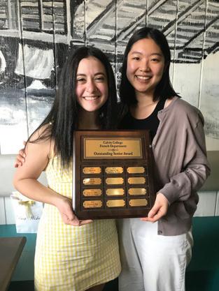 The day before commencement, French grads joined Professor Jolene Vos-Camy and Professor Otto Selles for a Haitian lunch at Chez Olga in Eastown. During the lunch, the Outstanding Majors were announced: Christina Romano and Hanvit Romano. They received the award in recognition for their commitment to learning French and for their contributions to the French program during their studies.