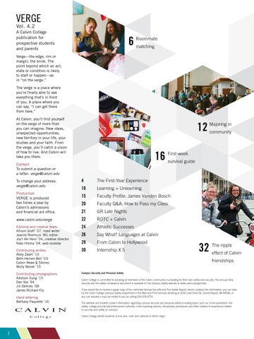 Production VERGE is produced two times a year by Calvin’s admissions and financial aid office.