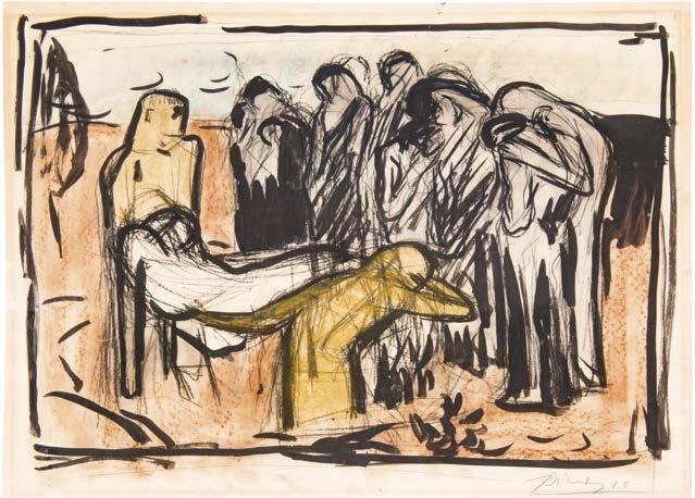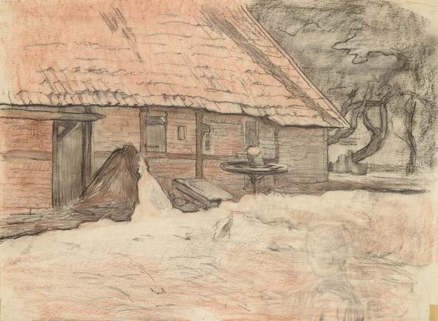 Crayon, craie noire et rouge sur carton