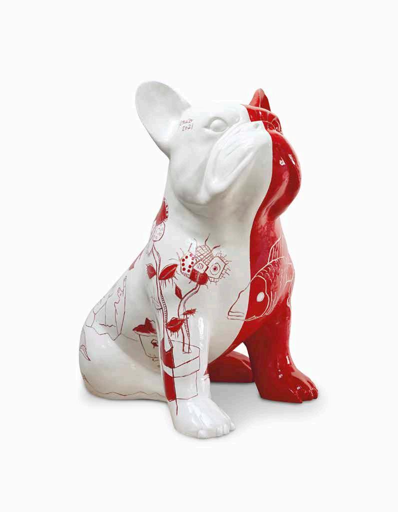 Clin d’œil et hommage au « Balloon dog », de Jeff Koons, prolongement de l’œuvre initiale par une animation subtile et totalement autonome créée par un jeu d’optique.