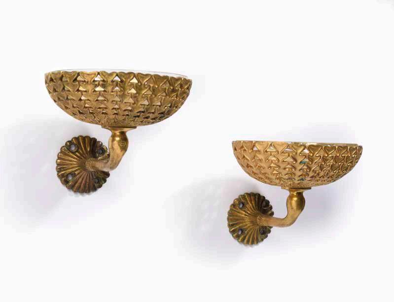 Paire de porte-savons en bronze doré à décor de feuillage stylisé