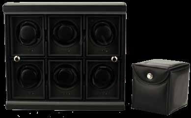 Coffret rotobox en cuir noir pouvant accueillir six montres (fonctionne).