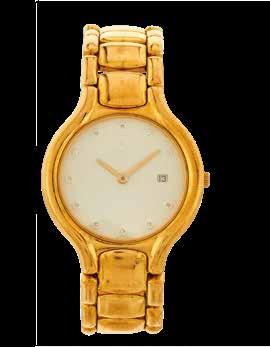Montre bracelet pour homme en or jaune 18k (750), cadran blanc, index bâtons appliqués formant les heures, date par guichet à 3h, mouvement mécanique à remontage automatique, bracelet intégré en or jaune 18k (750).