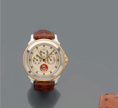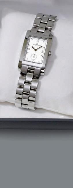 Elégante, montre-bracelet étanche, automatique, en acier et or gris, avec date et seconde au centre, sur bracelet Jubilé en acier.