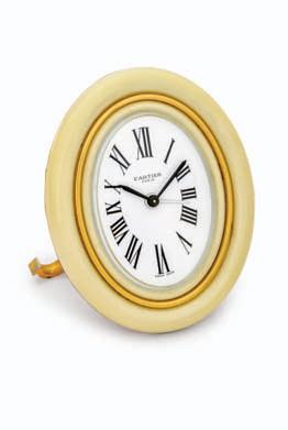 A fine, gilt brass, quartz Baignoire style desk clock with alarm, by Cartier.