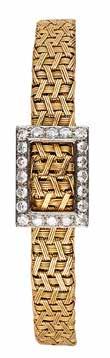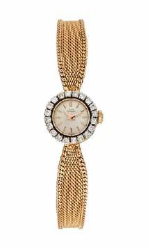A fine diamond and 18K gold, mechanical movement, lady’s wristwatch, by Omega.