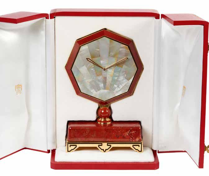 A fine gilt brass and lacquer quartz Art Deco desk clock, by Cartier.