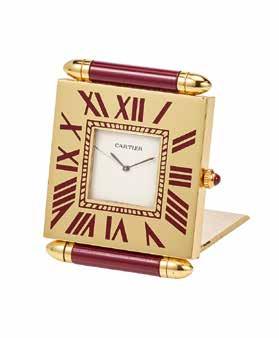 An 18K gold and enamel desk clock, by Cartier.