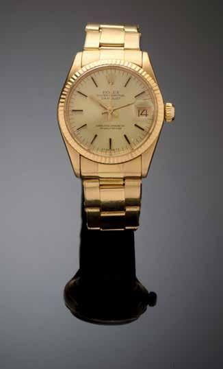 Montre bracelet de femme en or rose 18K (750), cadran blanc, index bâtons formant les heures, date à 6h, mouvement mécanique à remontage automatique, lunette striée, bracelet type jubilé en or rose 18K (750) avec sa boucle déployante siglée. Cadran, boîtier et mouvement signés. Poids brut : 61,2 g.