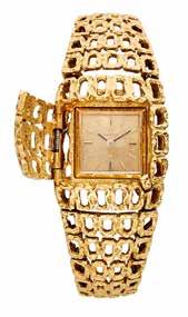 An elegant 18K gold quartz lady’s wristwatch, by Harry Winston.