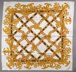 Carré en soie imprimée, titré “Mors et Filets” par Françoise Héron