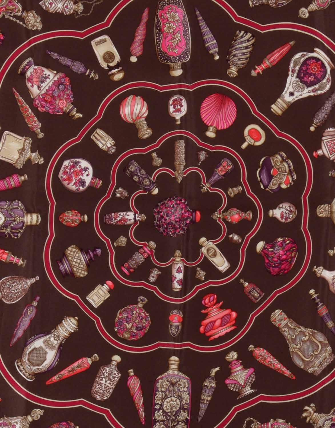 Petit carré en soie imprimée, titré “Qu’importe le flacon... Pourvu qu’on ait l’ivresse...” par Catherine Baschet