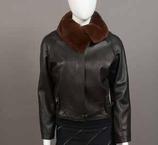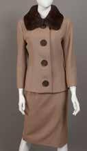 Tailleur en laine vierge marron glacé, composé d’une veste à simple boutonnage, col fourrure, et d’une jupe - Taille it. : 44