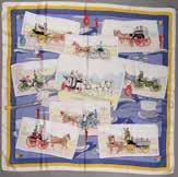 Carré en soie imprimée à motif de calèches - (taches et fils tirés) 110/130 E