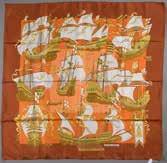 Carré en soie imprimée, titré “Armada” par Christiane Vauzelles - Bon état 90/110 E