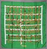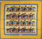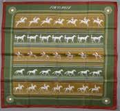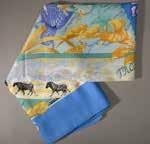 Carré en soie imprimée, titré “Ecuries” par Hugo Grygkar