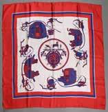 Carré en soie imprimée, à décor de calèches - Bon état 90/110 E