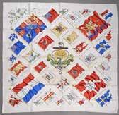Carré en soie imprimée titré “Pavois” (taches et fils tirés) 60/70 E