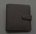 Couverture d’agenda en cuir et daim monogrammé, stylo bille en métal argenté Bon état - Dimensions: 8 x 11 cm 50/60 E