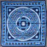 Carré en soie imprimée, titré “Séquences” par Cathy Latham