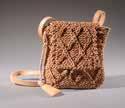 Sac 23 cm en cuir et toile marron, garniture en métal doré, fermeture pression sous rabat, anse chaîne entrelacée de soie marron, patte d’épaule 80/90 E