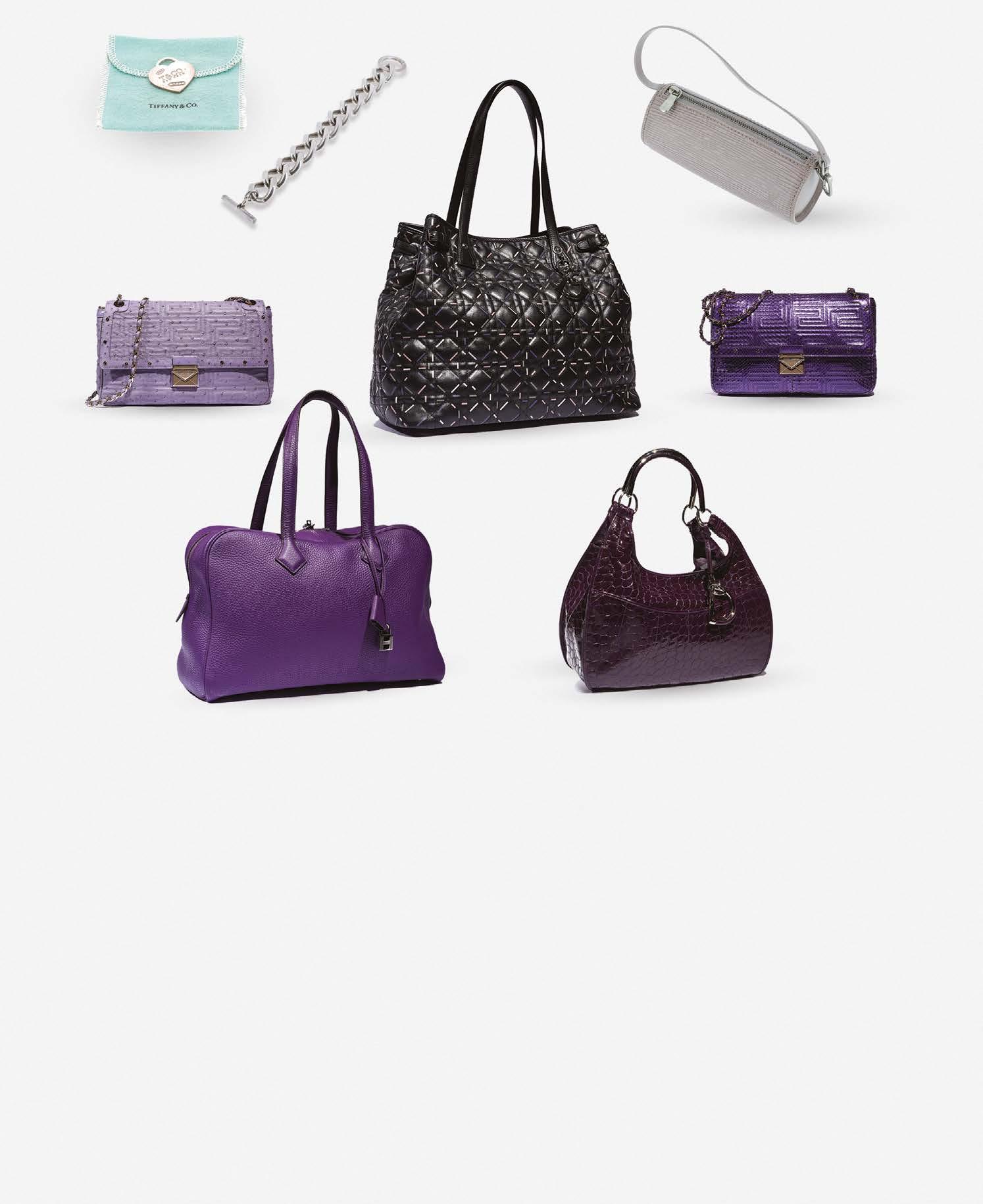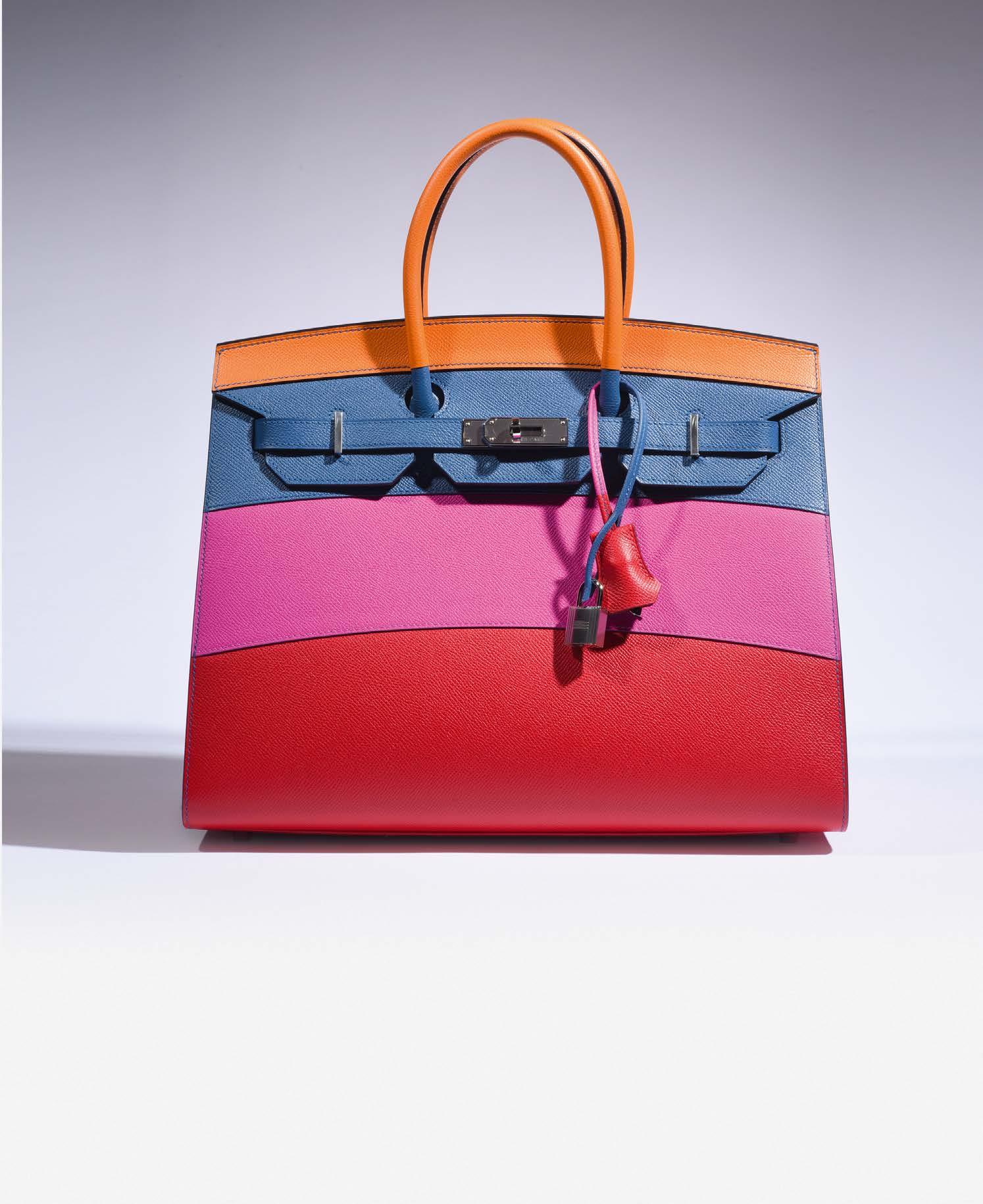 Sac «3 jours» 31 cm en cuir noir, interieur bleu, bordures multicolores, garniture en métal argenté, fermeture éclair, double poignée, clochette, tirette, anse bandoulière amovible.