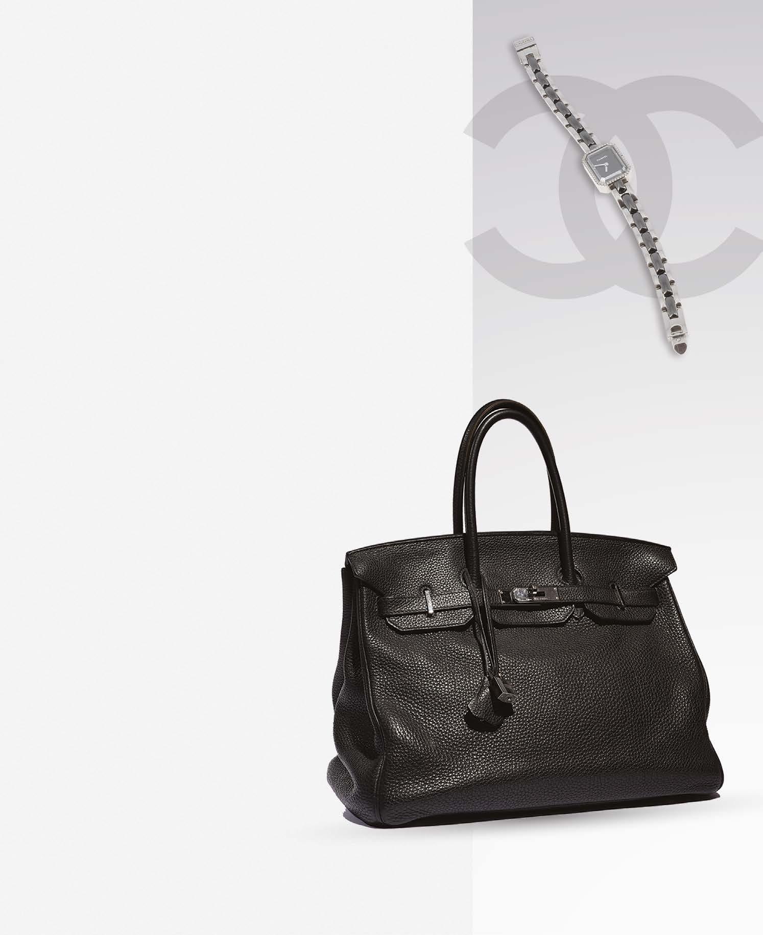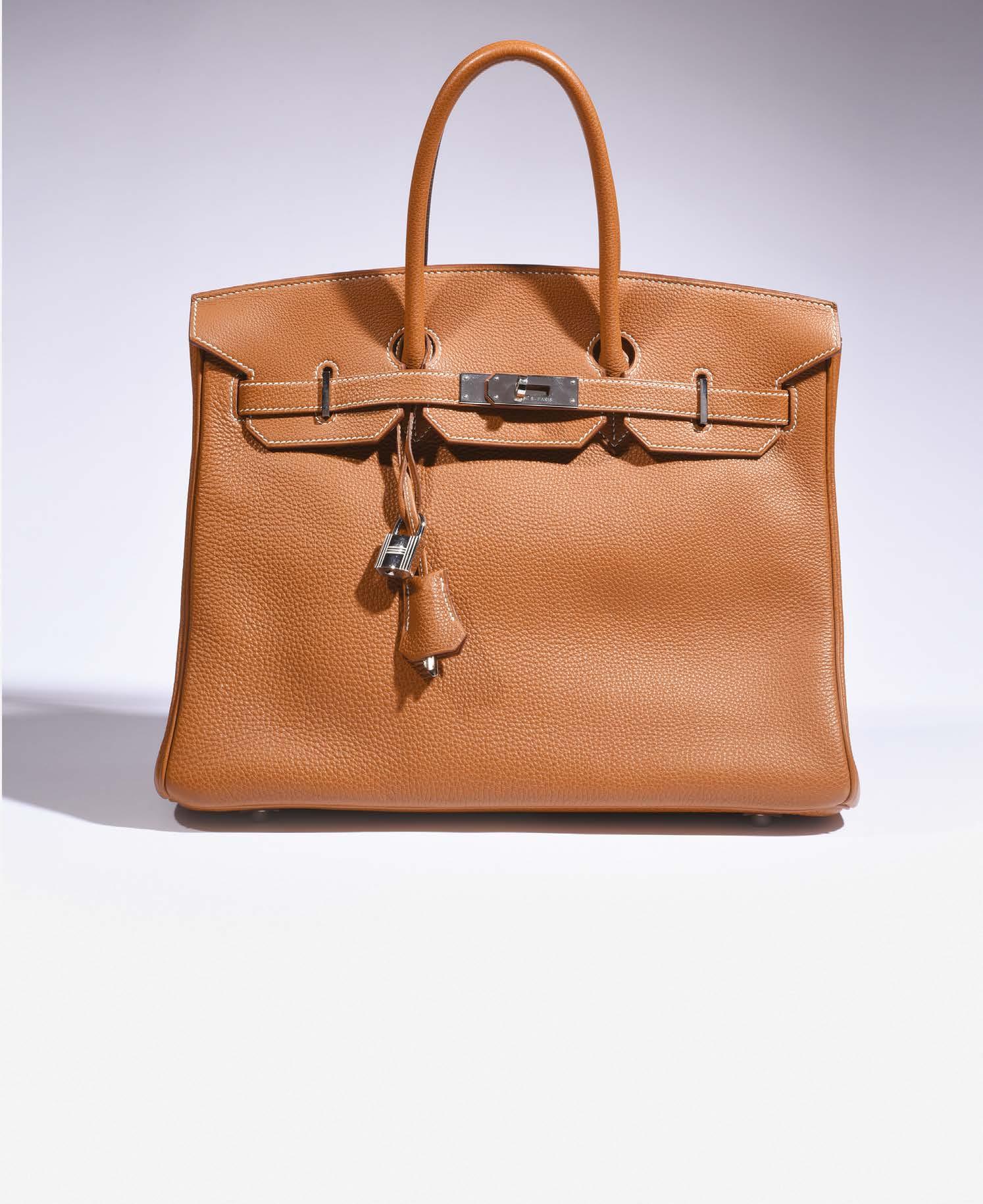 Sac «Birkin» 35 cm en cuir togo noir, garniture en métal argenté palladié, cadenas, clefs, clochette, tirette, double poignée