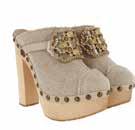 En toile et bois beige, boucles de chaussures en motif fantaisie.