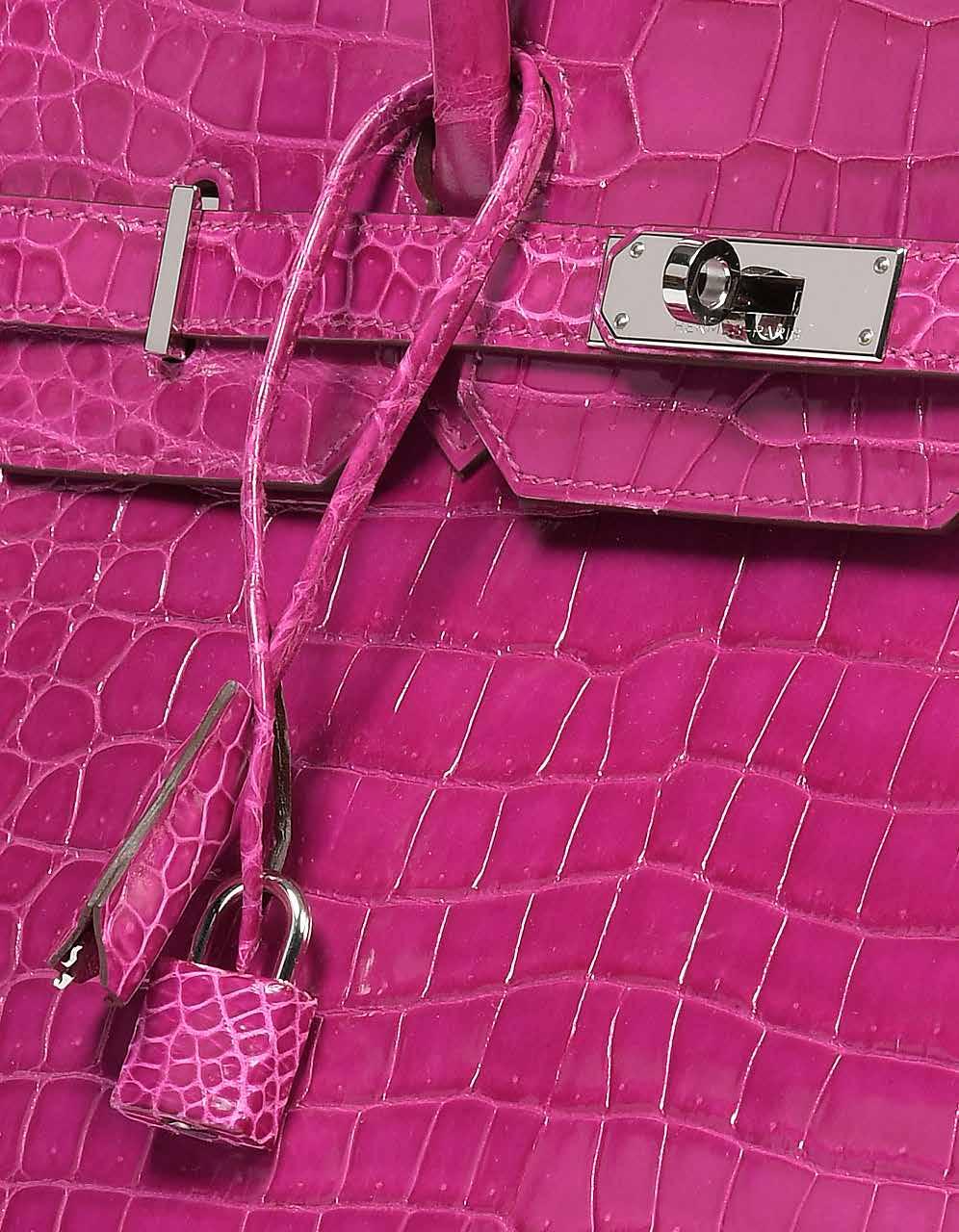 En taurillon Clémence blanc, doublure en agneau blanc et bijouterie en métal palladié. Avec bandoulière, tirette, clochette, cadenas gainé et clefs. Année de fabrication 2002.
